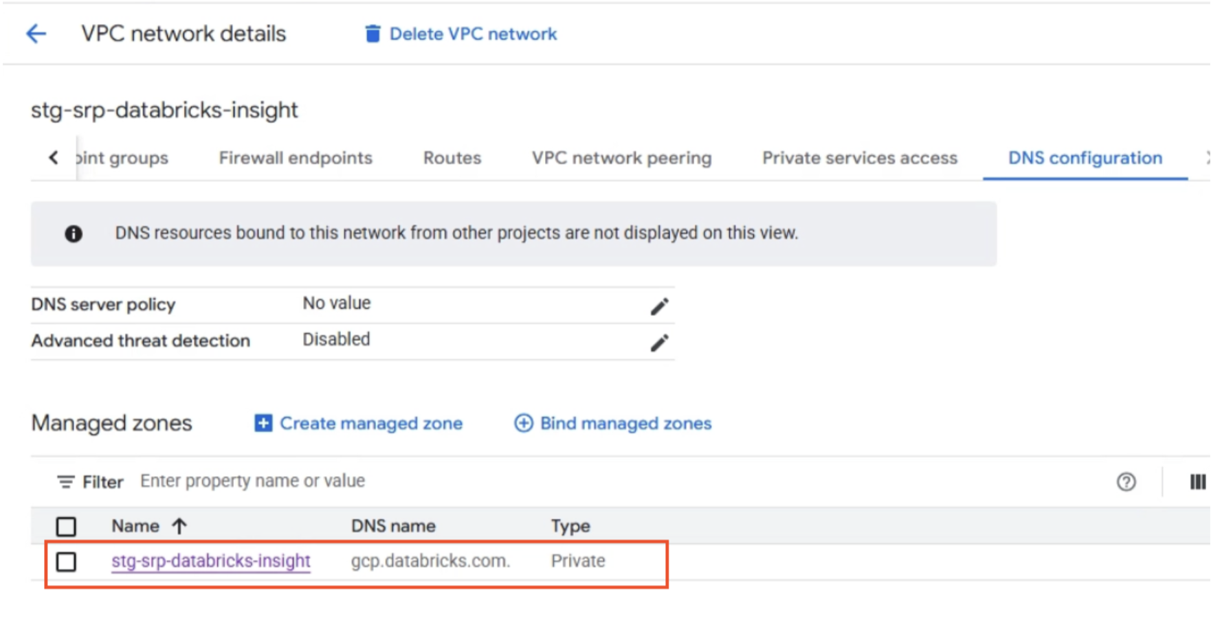 Private Zone: gcp.databricks.com
